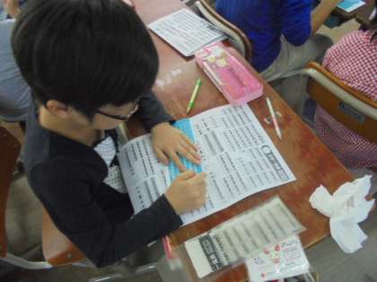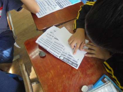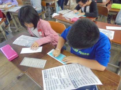 総合の学習で点字の体験をしました。点字を打つことができる専用の道具でそれぞれ思い思いに点字を打ちました。打った後は、実際に触ってみました。子どもたちが多様な人々と関りあえるような学びになればと思います。