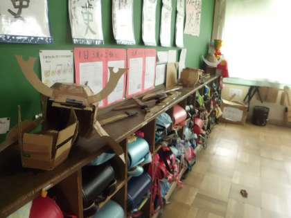 6年生は,各クラス学芸会に向けて着々と準備をしています。あるクラスでは段ボールが山積みになっており,ロッカーのうえや窓際に段ボールで作成されたいろいろなものが飾ってあります。一体何に使われるのか,楽しみです。