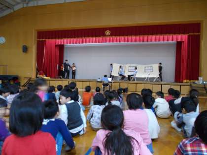 JRの職員の方が来られて,駅や電車のマナーを実演をもとに教えてもらいました。