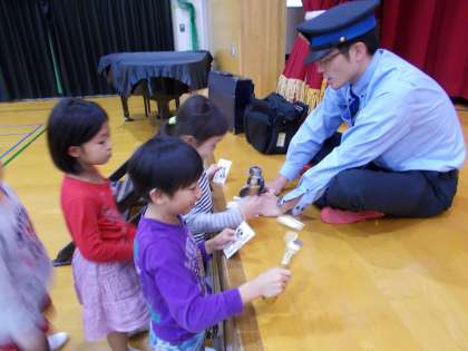 子どもたち一人一人は,小さな車掌さんになってブレーキをきっていきました。