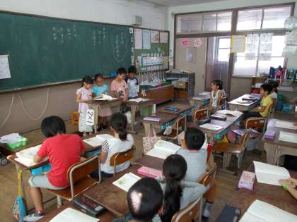 学習の後半には,それぞれの登場人物になって音読発表会をしました。