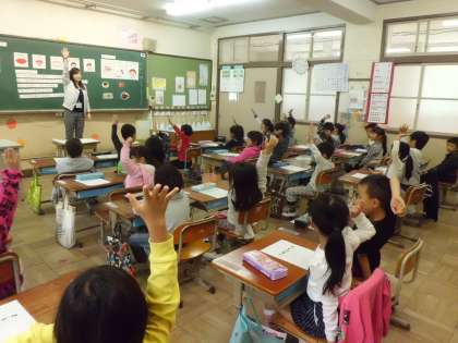 毎週木曜日に,嵯峨小学校から栄養士の先生が来られます。今日は1年生の1クラスで食の指導がありました。よくかんでたべると,いいことがいっぱいあるというお話をききました。給食時間にも来てくれて,子どもたちの食事の様子も見てもらいました。