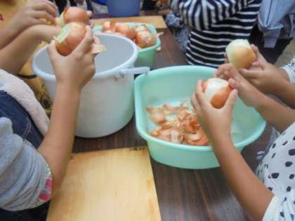 カレーライス作りでは,玉ねぎの皮をむいたり,人参やジャガイモを切ったり,米を洗ったりと参加した児童で手分けして行いました。カレーを煮込んでいる間は,PTAの方にブーメランの作り方を教わり,実際に体育館で飛ばして遊びました。ブーメランで遊んだあとは,自分たちで作ったカレーライスをみんなでいただきました。