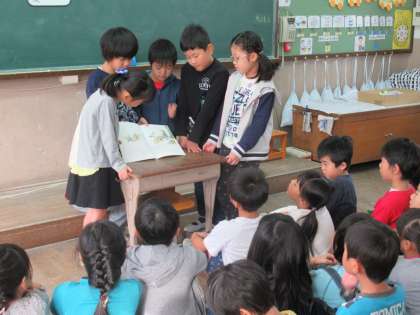 朝読書の時間に,本係が交代しながら読み聞かせをしました。