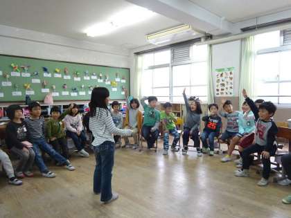 2年2組では,水曜日の中間休みは,みんなあそびをしています。今日はあいにくの雨模様ということで,教室でも楽しめるものを,遊び係さんが考えてくれました。そのあそびは,フルーツバスケット!自分の果物がいつ言われるか,ドキドキ…。とっても盛り上がりました。
