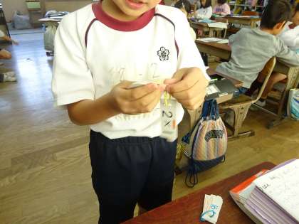 2年生は,初めてかけざんの学習をしました。九九カードを使って,「上がり九九」「下がり九九」「バラバラ九九」の練習をしています。だいぶ覚えてきた人も多いようです。目指せ,九九の達人!引き続きがんばっていきましょう。