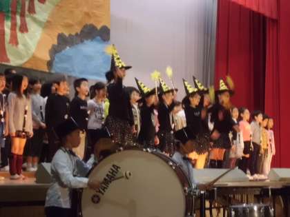 今回は全員がずっとライトを浴びていろいろな曲を歌ったり演奏したりしました。覚えることも多かったと思いますが,とてもよくがんばりました。