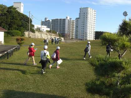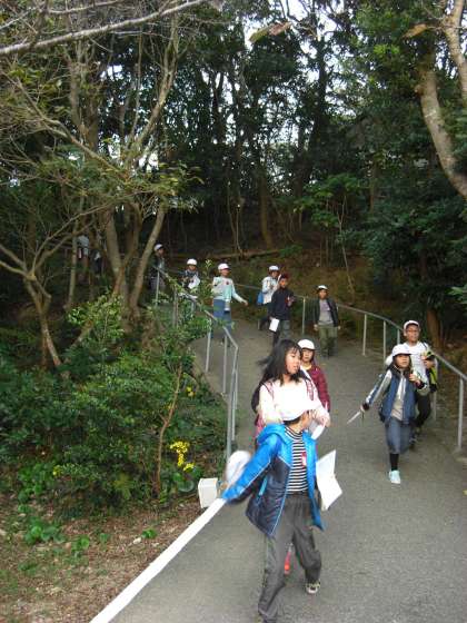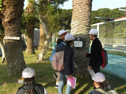 地図をたよりにグループで所内を回り、ポイントにある問題を解いて回りました。