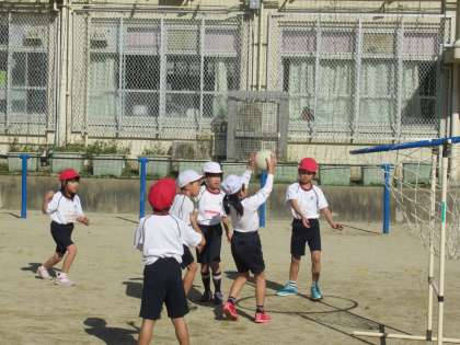 パスゲームの学習が2回目となると,「パスをしたらすぐに走る」「早く相手ゴール側に走る」など,よい動きになっていました。