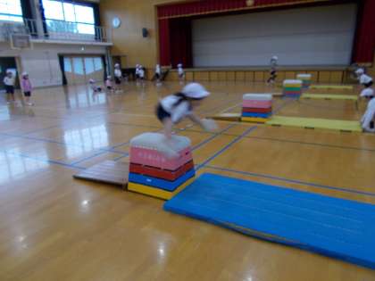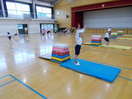 子どもたちは,黙々ととびばこに向かって走り,跳び越えていきます。