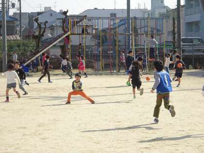2年2組では,水曜日恒例のみんな遊びをしました。朝の会でどんな遊びをするか,みんなの意見を聞いて,遊び係さんが決めてくれました。今日の遊びは「こおりおに」です。運動場を力いっぱい走って,楽しみました。