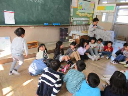 お天気が良かったのですが,遊び係が「はんかち落とし」を計画していたので教室で遊びました。次回は「バナナおに」をする予定です。