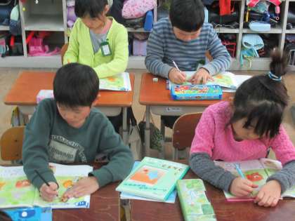 点と点を直線でつないで,動物の家をつくりました。定規を使って,丁寧に直線を引いて,動物を囲みます。すると2つのなかまの形に分けることがでいました。