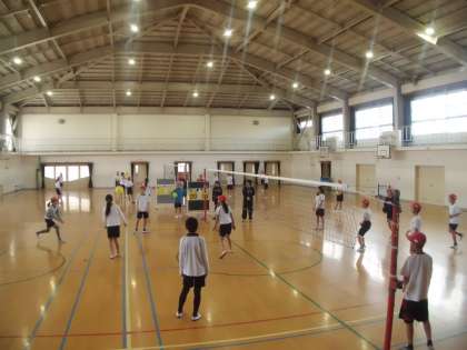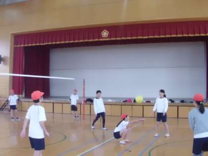 6年生は,体育の学習でソフトバレーボールを熱く熱く頑張っています。チームの特徴に応じた攻め方を知り,自分のチームの特徴に合った作戦を立てて戦っています。子どもたちは,「次こそは,勝ちたい。」「もっとうまくパスをしたい。」など,向上心のある言葉を口にするほど熱い授業になっています。