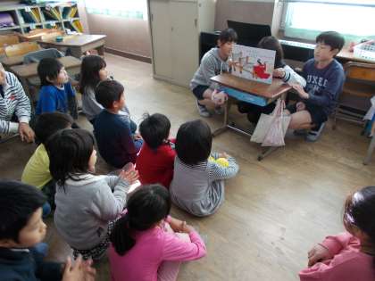 子どもたちは,6年生の読み聞かせに耳をすませ