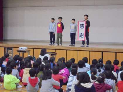 児童会本部からは,今月の生活目標の発表がありました。今月の生活目標は,「感謝」。家族,地域の方々,友だち,先生などたくさんの人に感謝の気持ちをもって生活していってほしいものです。