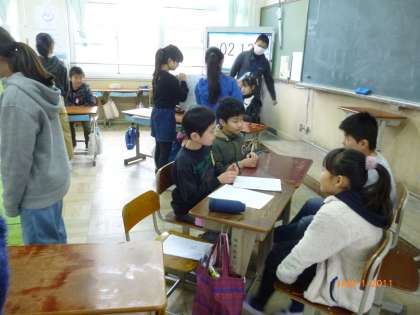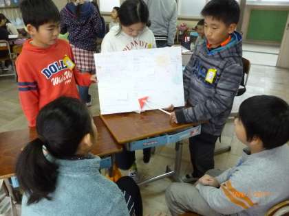 5年生の「総合的な学習の時間」では、エコライフについて学習してきました。私たちの近い将来起こりうる環境問題についても、グループで調べたことをまとめ、4年生に向けて発表会を行いました。