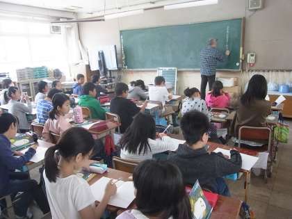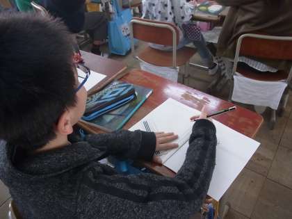 5年3組では,国語の学習のはじめとして,詩の学習をしていました。担任が黒板に書いた詩を丁寧に書き写して,自分の感じたことをまとめることができていました。