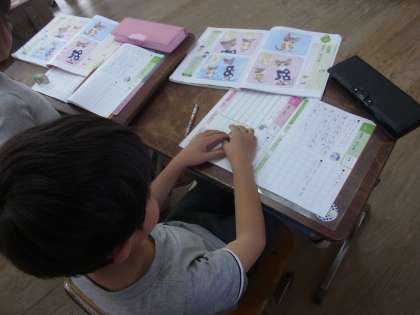 2年生が,道徳の学習をしていました。「大きくなったね」という教材を使って,「生きる」ということについて考えました。少し難しいテーマのようですが,みんなよく考え,ノートに書いていました。