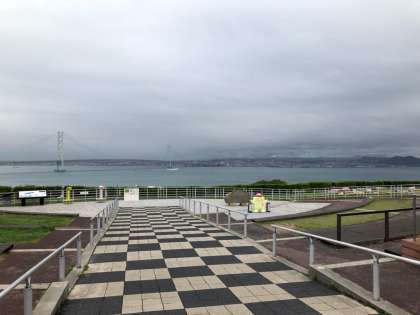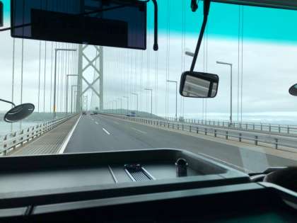 明石海峡大橋を渡り,淡路サービスエリアに到着しました。この後,明石海峡大橋をバックに記念写真を撮ります。