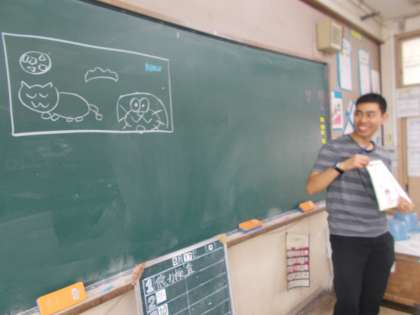 外国語活動でALTのマット先生と一緒に学習をしました。今日の学習は"Hello every one" ,絵をヒントにして,マット先生の好きなものを楽しみながら考えました。マット先生の描く絵はユニークで「さすがマット先生」という絵でした。