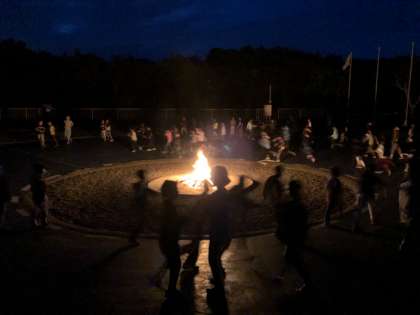 まだ明るい中、子どもたちが楽しみにしているキャンプファイヤーが始まりました。歌やゲーム、フォークダンスなど、楽しいプログラムが進むにつれて、周りも真っ暗に、しっとりとした雰囲気になりました。みんなで盛り上がりました。
