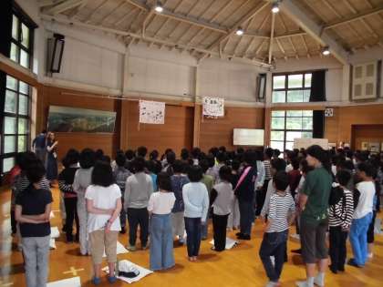 一緒にみさきの家で活動している金閣小学校の4年生と合同で朝の集いをしました。校歌を歌い、お互いに学校紹介をして交流しました。