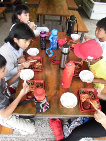 11時、昼食はお弁当です。みんな元気なので、食欲はあります。