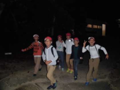 さすがにこの雨ではもう無理かなと思っていたところ、19時頃から雨が止みました。奇跡的と言っても大げさではないほど、天候に恵まれているように思います。ナイトハイクは、真っ暗な中、班ごとに懐中電灯の明かりを頼りに、みさきの家の敷地内をグルッと1周して戻るハイキングです。山道をみんなで励ましあいながら仲良く歩いたようです。