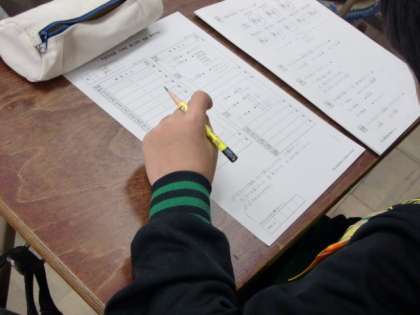 5年生では、国語、算数、理科、社会、音楽の学力定着テストを行なっています。