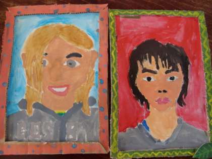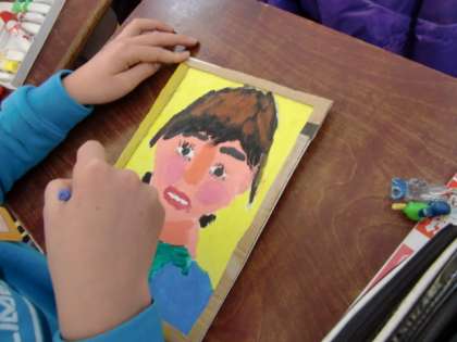 個性のある作品がたくさんあります。全員の顔が出来上がるのが楽しみです。