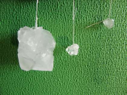 最初は小さな結晶でしたが、何度も水溶液に入れておくことで、だんだん大きな結晶になりました。