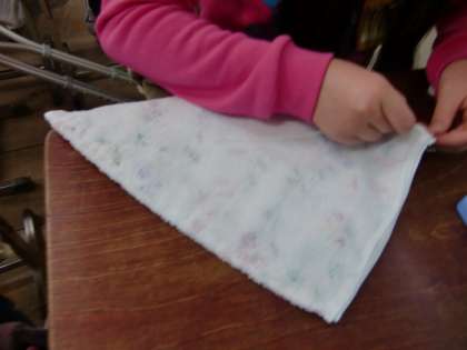 周りを縫ったぞうきんの中の部分を縫い始めました。