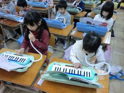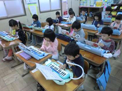 けんばんハーモニカ,きらきらぼしやこいぬのマーチなどの曲がひけるようになりました。