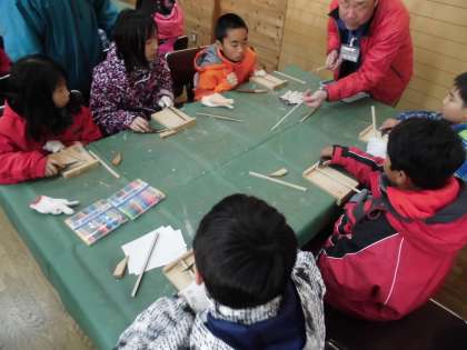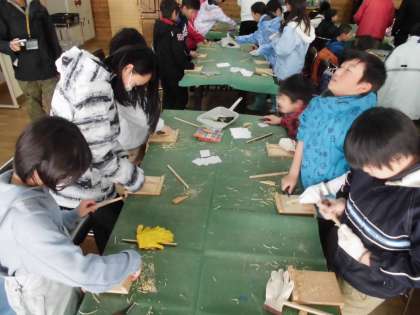 小刀で竹を削って紙やすりで仕上げ、自分だけのお箸を作りました。