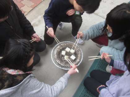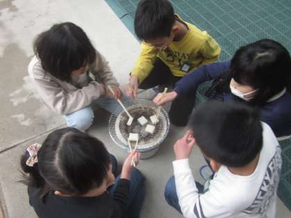 七輪を使っておもちをやいている1組の様子です。