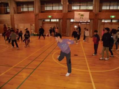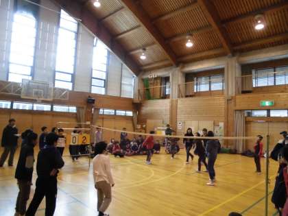 午前中のプレイホールでのスポーツ活動は、大なわ跳び、ソフトバレーボール、ドッジボールをクラス対抗でしました。