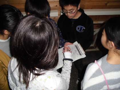 午後は雨天のため、スキーが中止になり、館内ウォークラリー。
