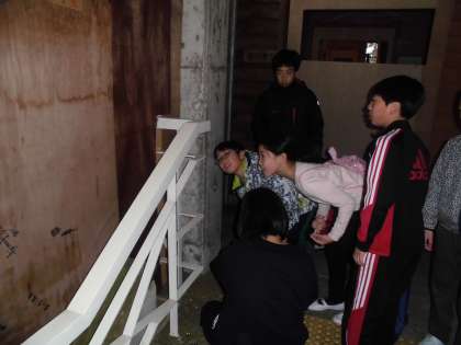 館内ウォークラリーの問題は柱の裏や手すりの下など、見つけにくいところにあって苦労していました。