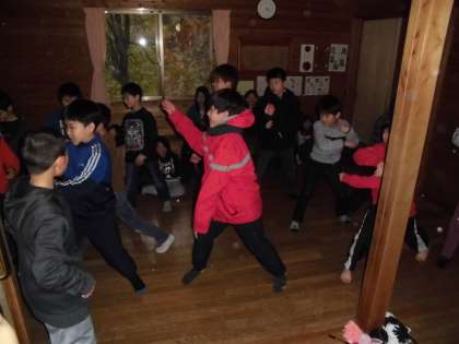 明日のキャンドルファイヤーに向けて、今日はフォークダンスやクラスの出し物の練習をしました。