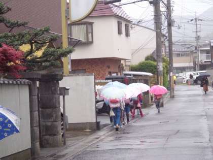 傘をさして歩きにくそうですが,左右の確認とできるだけはしによって