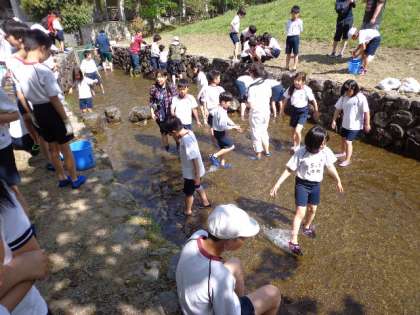 こわがる子もいましたが,協力してつかんでいました。