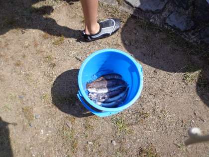 魚つかみと魚さばき,塩焼きで昼食です。