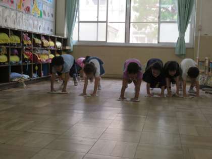 中でもぞうきんはみんなでスピードを合わせて進むことが難しいですが,頑張っています。