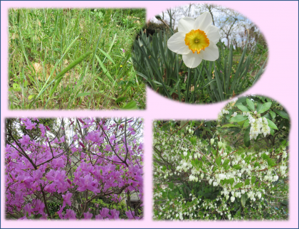 ネイチャーランドは,よく見るといろいろな花がさきはじめ,昆虫も顔を出し始めています。麦の穂のようなものを付けた雑草は,「ピーピー笛」になります。5年生が稲を育てる田に,この雑草がたくさん生えていました。実の部分を茎ごとぬくと,空洞の茎が残ります。そこを吹くと「ピー」と音が鳴りました。