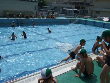 運動会が終わったばかりで、朝晩はまだすずしいのですが、本日プール学習が始まりました。まだひざくらいの低水位なのですが、子どもたちは大喜びで、大歓声が上がっていました。今後は水位が上がりますが、元気に楽しく水泳学習を進めていきたいと思います。