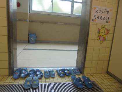 いまは がっこうに きている おともだちが すりっぱを きれいに ならべて くれています。