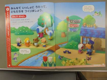1つめの がくしゅうでは えの なかから うたをさがします。 どうぶつさんたちは なにを しているかな? どんな うたが みつかったかな? こえの おおきさに きをつけて うたってみよう♪