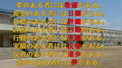 この休校期間中,朝や夕方に校区を自転車で回っていると,家の前でダッシュの練習を繰り返す6年生や素振りの練習をする卒業生の姿などを何度か見ました。きっと大きな目標があるからこそ,このような状況にも負けず,工夫してできる範囲の努力を積み重ねることができるんだと思います。みなさんも6年生になって「〇〇な自分になりたい!」「〇〇を頑張ろう!」など目標があるはずです。この休校期間中もその目標を忘れないでください。そして,今からでもできることがあるなら努力してみましょう。「コツコツは自分にカツコツ!」ファイト!