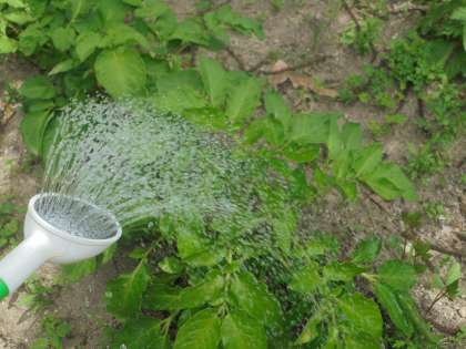 じゃがいもは,休校中もすくすくと成長していますよ。植物が成長するために必要な条件はもう分かりましたか?まだ調べていない人は必ず調べておこう。今日は条件の1つである水をたっぷりあげましたよ!